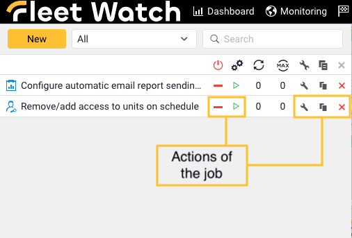 Copy the job, that is, create a new job using the selected one as a template. A click on the icon opens the job creation window in which the same settings are selected as in the original job.