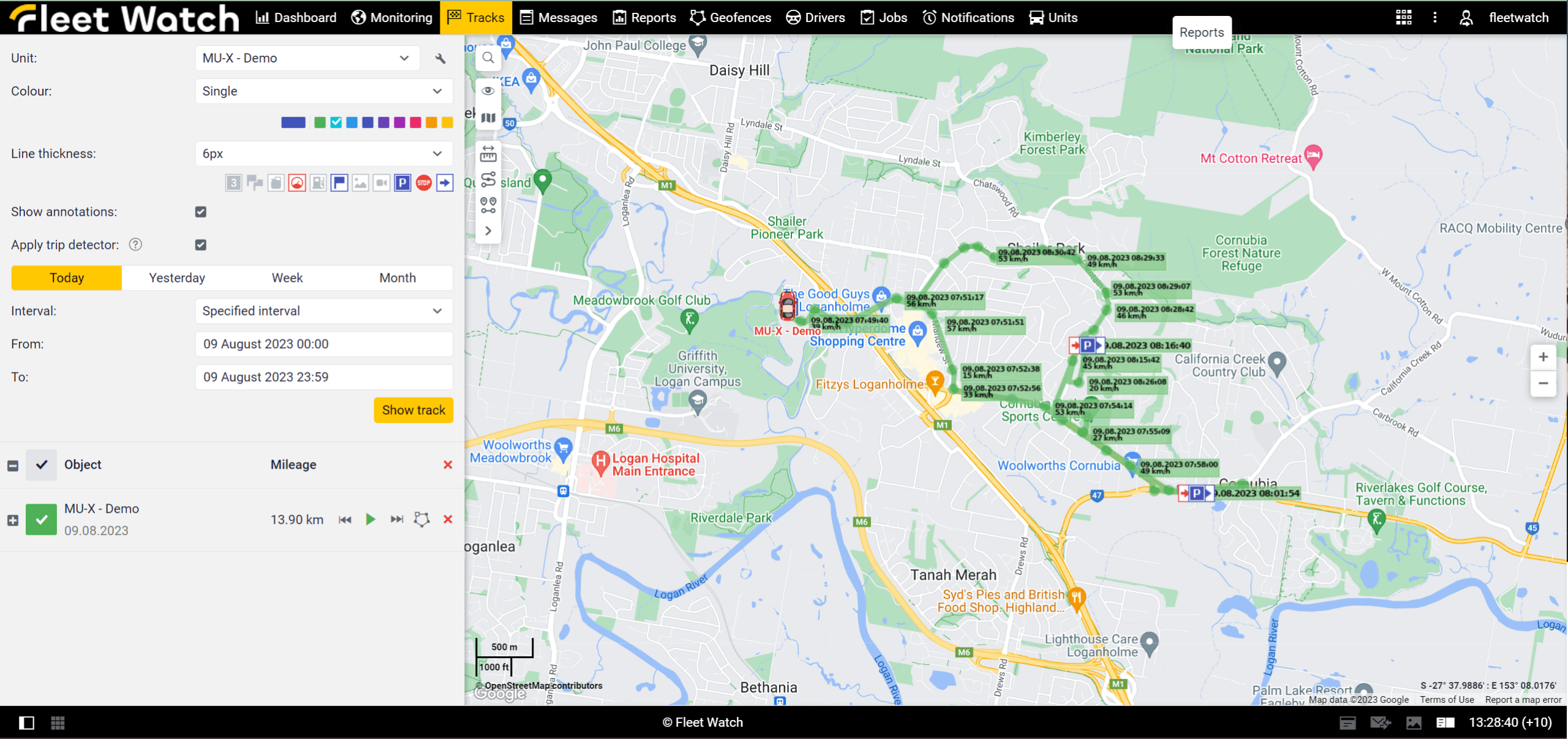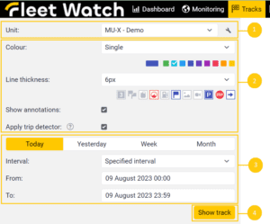 2. Specify the track parameters if necessary these include; line thickness, colour, stops, parking, speeding.
